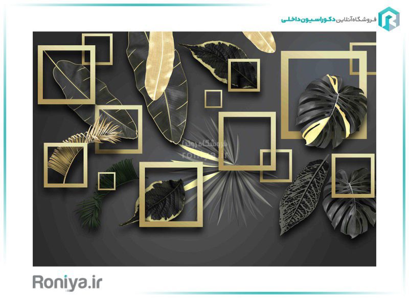 پوستر دیواری طرح برگ طلایی و مشکی یک پوستر دیواری مجلل است که با تم رنگی خاص و طراحی سه بعدی حرفه ای، زیبایی و مدرنیته را به فضای اتاق دعوت می کند.