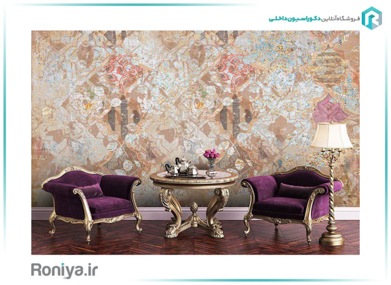 رنگ های صورتی، بادمجانی، سرخابی، آبی درباری، سرمه ای، کله غازی و گلبهی بهترین ترکیب رنگ ها را با این پوستر رقم خواهد زد. این رنگ ها را می توانید در مبلمان، کوسن، کاناپه های راحتی، پرده و یا فرش اتاق استفاده کنید.