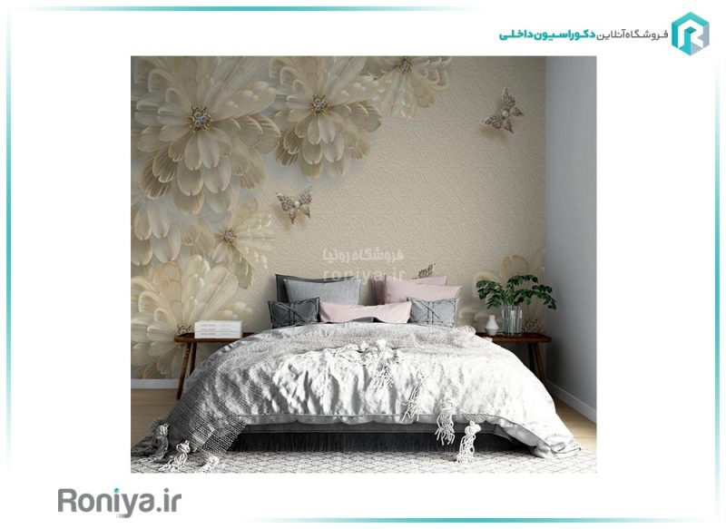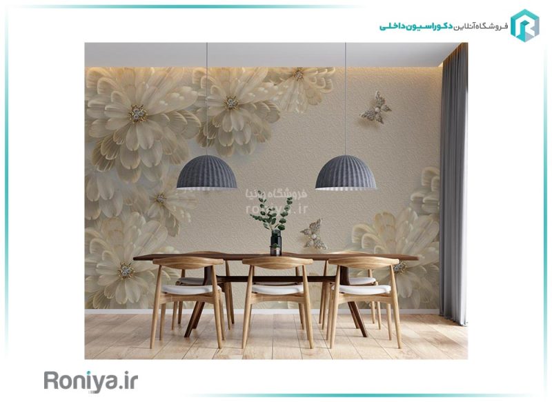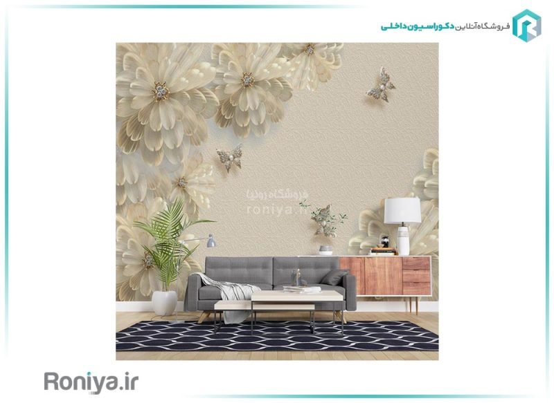 این پوستر سه بعدی پذیرایی که طرح های گل و پروانه دارد حس زیبایی را در خانه ایجاد می کند و به دلیل سه بعدی بودنش واقعی به نظر می رسد. اگر مبلمان شما دارای رنگ شکلاتی وقهوه ای می باشد می توانید از این پوستر دیواری استفاده کنید تا پذیرایی خودتان را دلنشین و زیبا کنید.