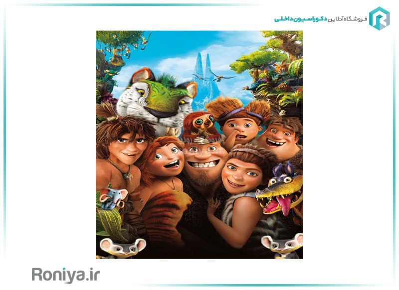 پوستر دیواری کودک سه بعدی انیمیشن غارنشینان طرحی جذاب و خاطره انگیز از خانواده ی کرود ها