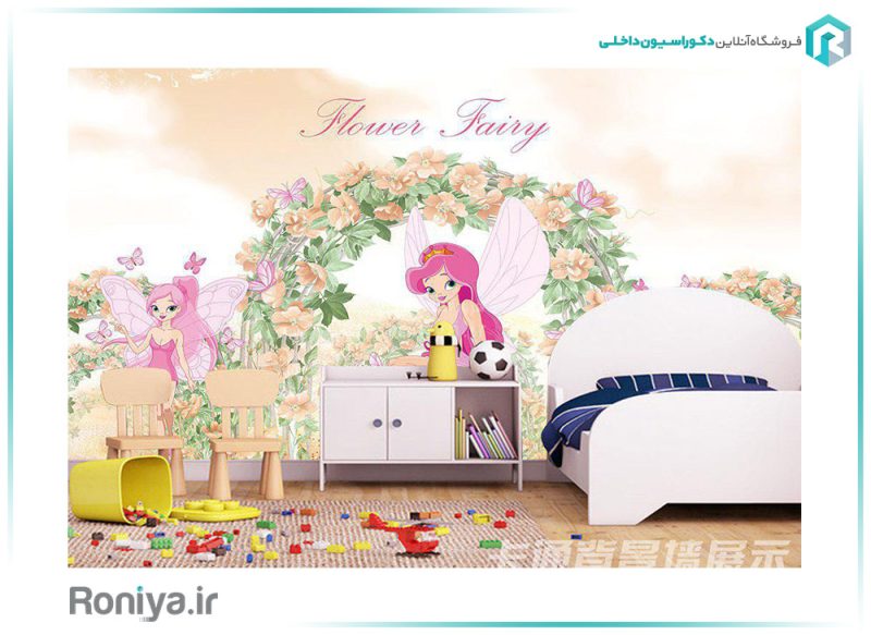 اگر در کنار این پوستر دیواری از کاغذ دیواری با طرح پروانه، ابر، گل و شکوفه یا … با رنگ های گلبهی، صورتی، لیمویی روشن و…. استفاده کنید جلوه ی زیباتری به اتاق می بخشید.