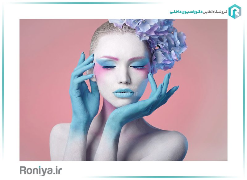 پوستر دیواری فشن سه بعدی دختر صورتی و آبی هارمونی رنگ هایی ملایم و ملیح