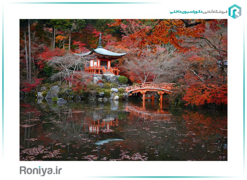 پوستر دیواری سه بعدی معبد دیاگوجی تصویری زیبا با ترکیب رنگی پاییزی از فرهنگ کهن ژاپن