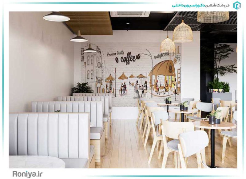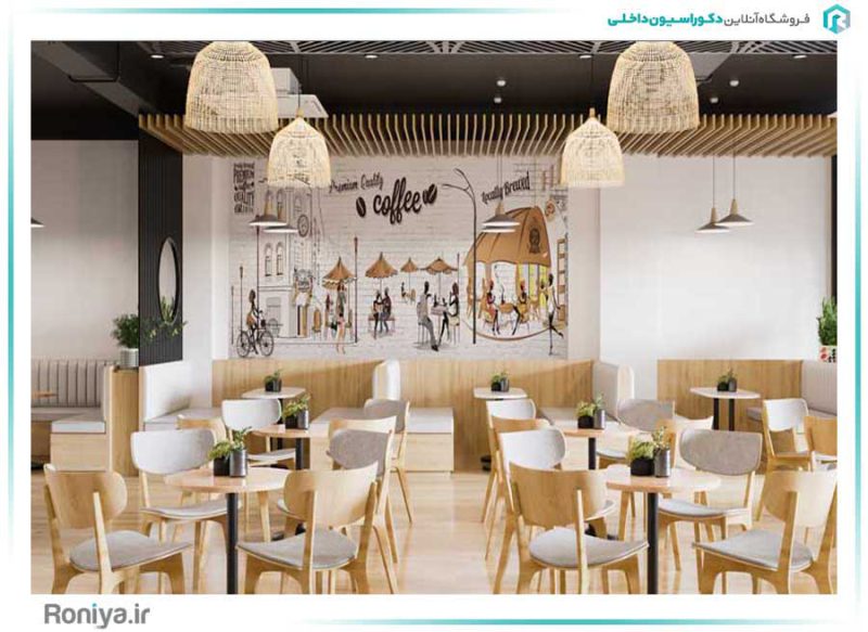 در کافی شاپ و رستوران ها اصول اولیه جذب مشتری دیزاین فضای داخلی سالن است که پوستر دیواری کافه میتواند یکی از گزینه های فوق العاده جذاب جهت تغییر دکوراسیون برای جذب بیشتر مشتریان باشد.کافی شاپ ها یکی از مکان هایی هستند که بیشتر افراد ساعت ها از وقت خود را در آن میگذرانند به همین منظور پوستر دیواری استفاده شده در کافه ها میتواند حس و حال متفاوتی را در مشتریان ایجاد کنند.طرح های استفاده شده در پوستر دیواری کافه ها به گونه ای است که نشان دهنده المان های مربوط به کافه و رستوران میباشد.قهوه از المان های اصلی کافه است به همین دلیل بسیاری از طرح های پوستر دیواری مربوط به کافه از این تصویر برای طراحی استفاده میکنند.