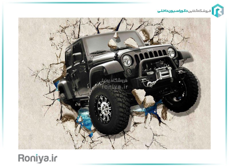 در طراحی پوستر دیواری جیپ از زمینه ی روشن برای جیپ مشکی استفاده شده است تا زیبایی چشم نواز این خودروی مدرن توجه بیننده را جلب کند.