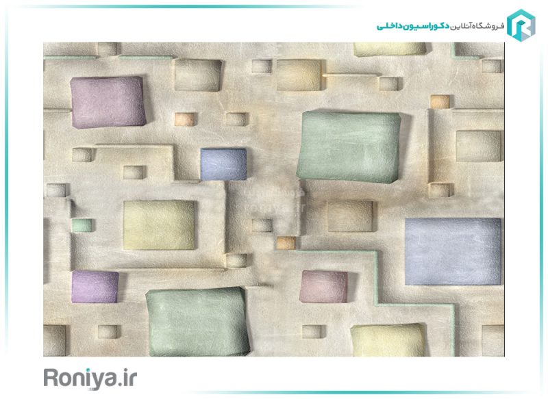 پوستر دیواری سه بعدی مربع های رنگی با زمینه ی کرمی روشن و طراحی سه بعدی