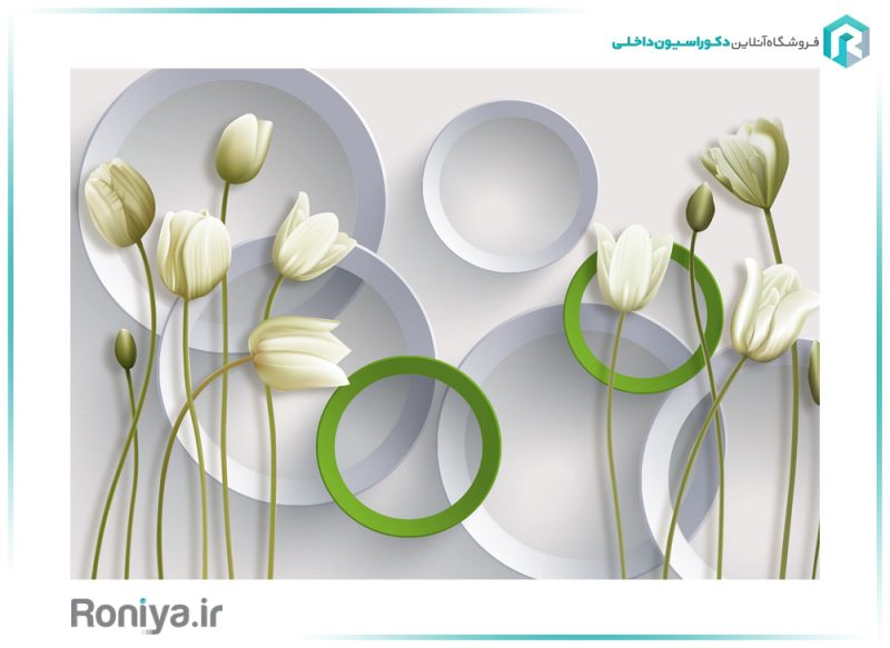 پوستر دیواری سه بعدی لاله های سفید بسیار مدرن و آرامش بخش است.