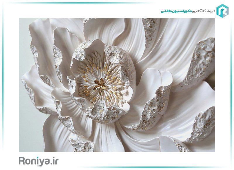 پوستر دیواری گل سفید طرح گچبری طرحی لوکس با تصویری خارق العاده و طراحی سه بعدی حرفه ای راهی تمیز و سریع برای دیزاین دیوارها با طرح گچ