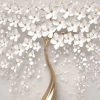 طرحی از شکوفه های سفید با درخشش چشم نواز رنگ طلایی و تصویرسازی سه بعدی حرفه ای، تصویری لوکس و آرامش بخش است که متناسب با سبک طراحی فضاهای مختلف منزل می تواند مورد استفاده قرار بگیرد.