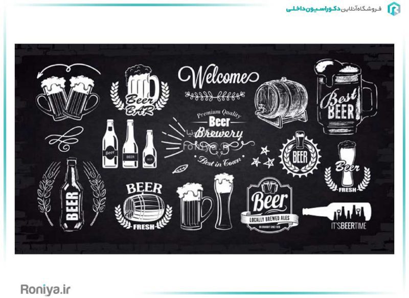 پوستر دیواری رستوران طرح نوشیدنی، طرحی شاداب با تلفیق رنگ مشکی و سفید نوعی ویژه از پوستر دیواری مناسب فضاهای کافه و رستوران است.