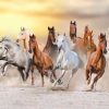 پوستر دیواری سه بعدی فرار اسب ها تصویری طبیعی از گله ی اسبهای نجیب