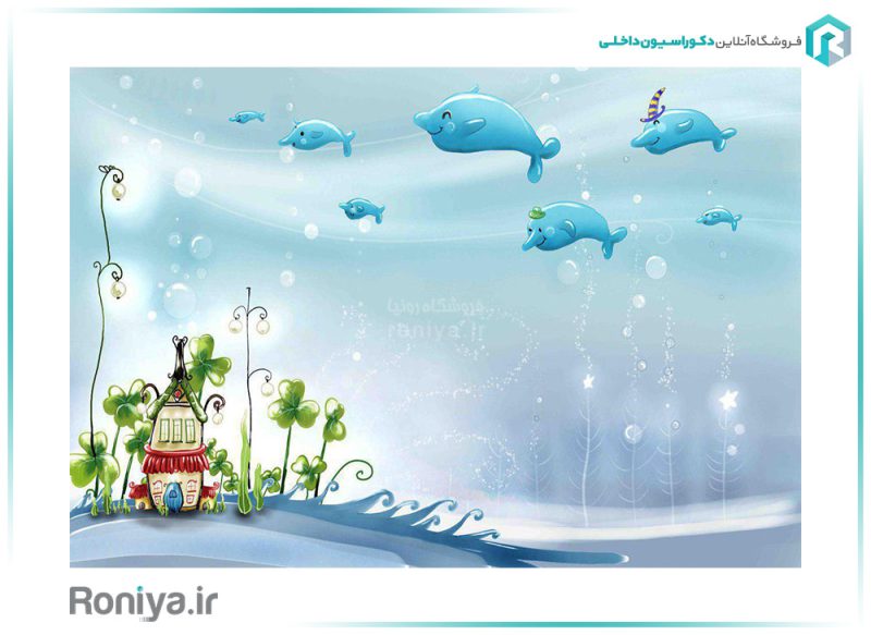 پوستر دیواری دلفین تصویری شاد برای اتاق کودک با طراحی سه بعد بر روی کاغذ خام درجه یک