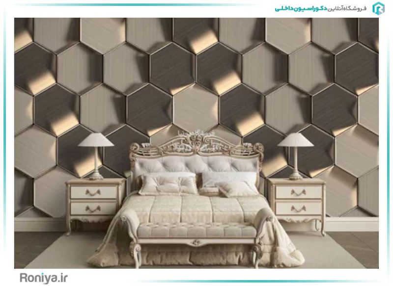 پوستر دیواری سه بعدی مدرن کد FS-113 طرحی جدید با ترکیب رنگی لوکس و تصویری چشم نواز از شیش ضلعی. دارای طراحی سه بعدی، چاپ  بر روی کاغذ قابل شست و و با بالاترین رزولوشن