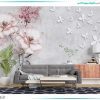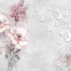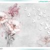 پوستر دیواری سه بعدی طرح گل و پروانه طرحی رمانتیک با طراحی سه بعدی حرفه ای و زمنیه ای به رنگ خاکستری روشن