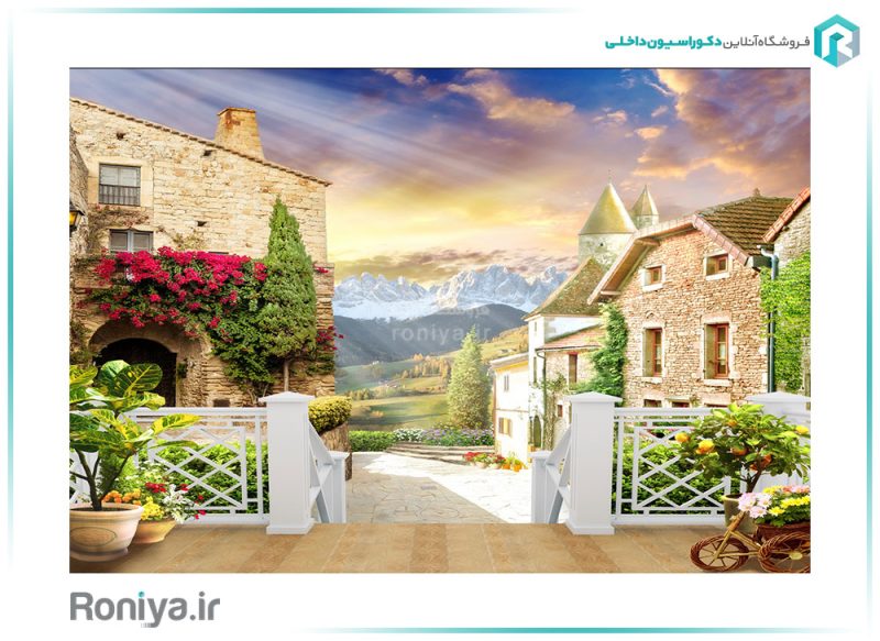 پوستر دیواری سه بعدی چشم انداز خانه های رویایی با ترکیب رنگی ملیح و طرحی آرامش بخش