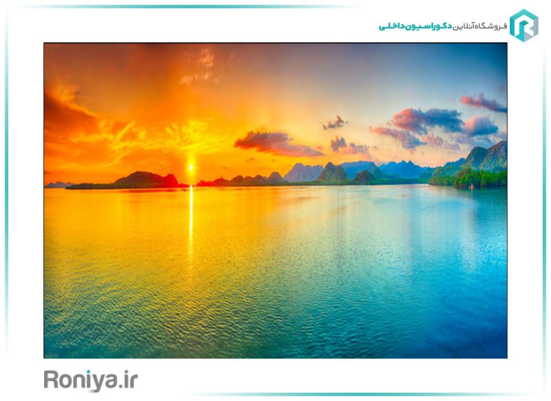 پوستر دیواری طبیعت سه بعدی غروب هفت رنگ طرحی رویایی و زیبا از غروب دریایی چشم نواز