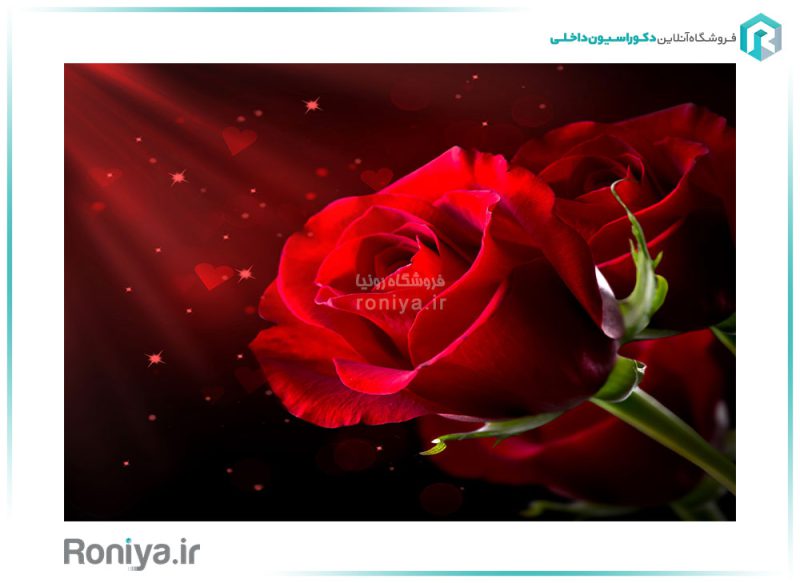 پوستر دیواری سه بعدی رز قرمز طرحی لوکس با ترکیب رنگی لاکچری و تصویر سازی سه بعدی شارپ