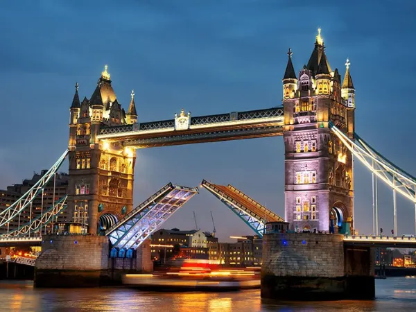 پوستر دیواری سه بعدی طرح باز شدن پل لندن در شب