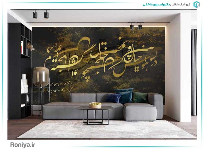 تصاویری که طرحی لطیف و ترکیب رنگی ملایم دارند، آرامش را به ارمغان می آورند.در پوستر دیواری نستعلیق طلایی طرحی از خطاطی را به تصویر کشیده ایم تا جلوه ای هنری را در اتاقتان ماندگار کنید. پوستر دیواری نستعلیق در ترکیب رنگ طلایی و مشکی که علاوه بر تصویر هنری جلوه ای لوکس را در محیط حاکم خواهد کرد.