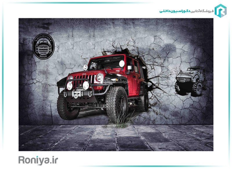 پوستر دیواری سه بعدی ماشین جیپ رانگلر طرحی سه بعدی از خودروی آفرود برای دکوراسیون های اسپرت