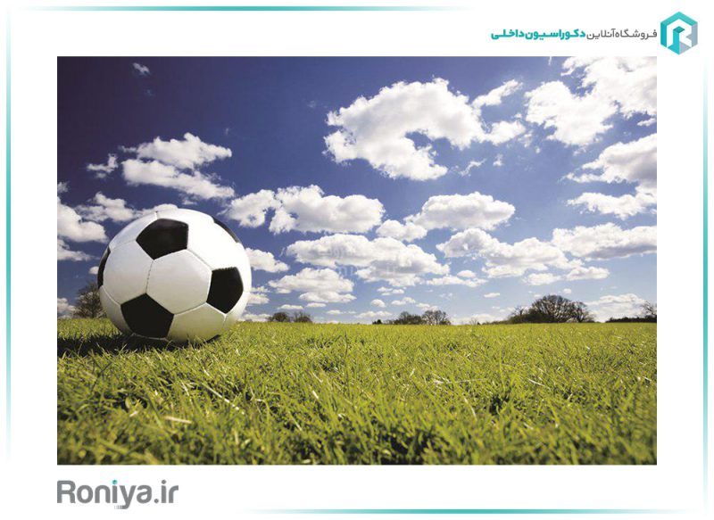 پوستر دیواری با طرح توپ قوتبال زیبا و چشم نواز مناسب برای اماکن ورزشی و فوتبالی . هنر عکاسی در این پوستر باعث ایجاد عمق بیشتر و احساس خوب نسبت به چمن و آسمان زیبا شده است .