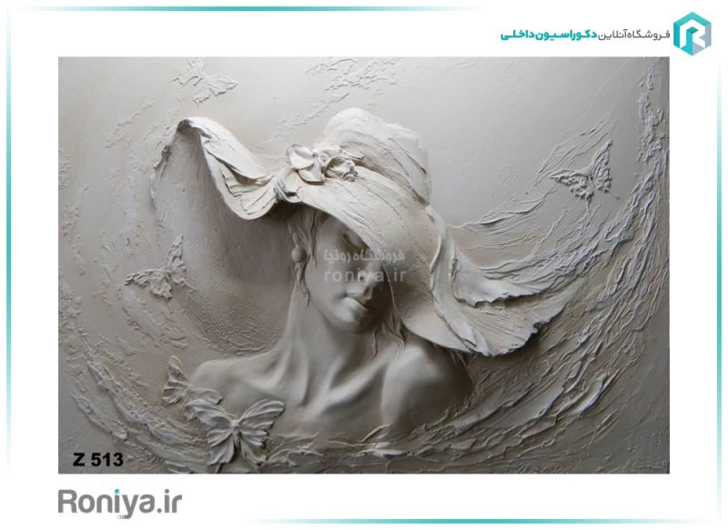 پوستر دیواری طرح مجسمه برجسته طرحی هنری با طراحی سه بعدی از زیبایی و لطافت دختری با کلاه کلاسیک