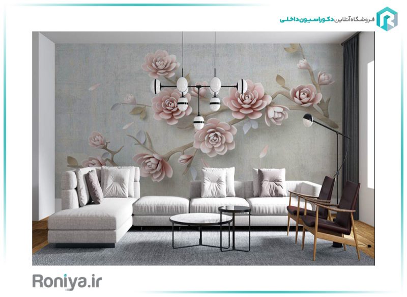 پیشنهاد می کنیم اگر می خواهید پذیرایی منزلتان زیبا و رویایی به نظر برسد از کاغذ پوستری گل صورتی استفاده کنید، وجود رنگ صورتی می تواند جلوه ی خاصی به خانه ی شما بدهد و همچنین باعث شود خانه ی شما بسیار شیک به نظر برسد.