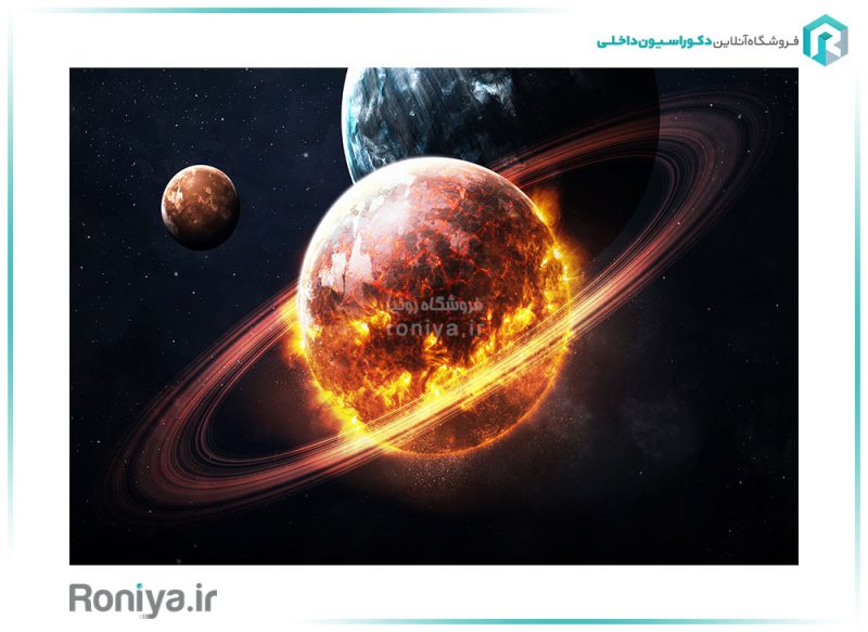 آسمان مجازی سیاره سوزان طرحی از رنگ های گرم در زمینه ای به زیبایی کهکشان های بی انتها