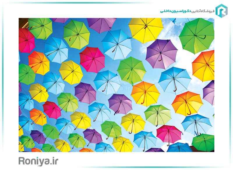 آسمان مجازی چترهای رنگی تصویری رنگارنگ از چترهای الوان برای سقف مال ها، مراکز خرید و پاساژها، اماکن تفریحی و ورزشی و …