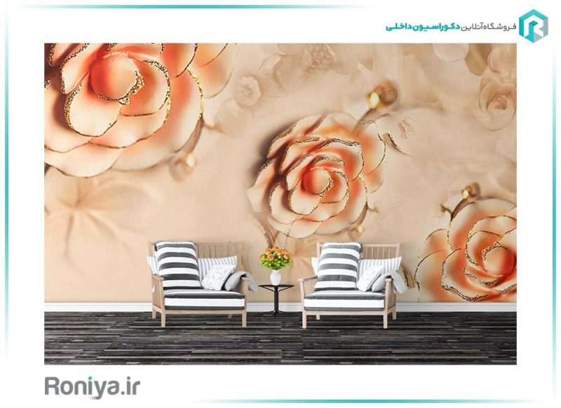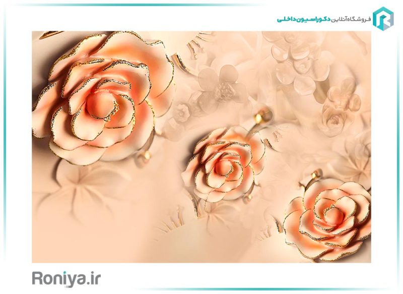 پوستر دیواری گل سه یعدی کرم صورتی ، این تم رنگ بیشتر در سالن های آرایش و یا آتلیه های عروس و داماد مورد استفاده قرار میگیرند همچنین در دکوراسیون هایی که با این رنگ هارمونی دارند.